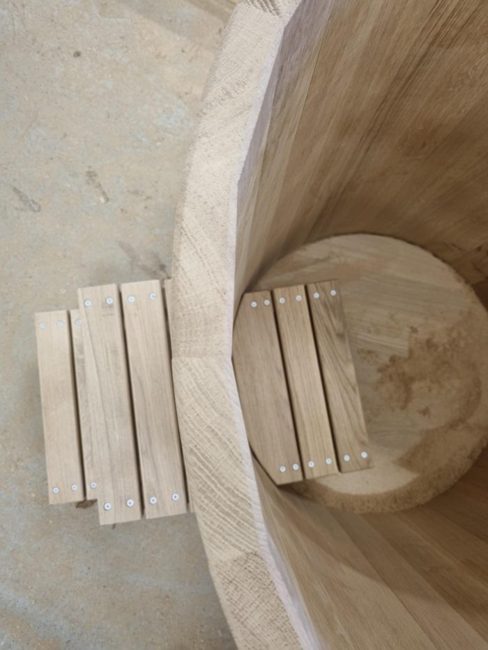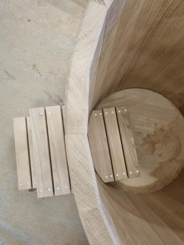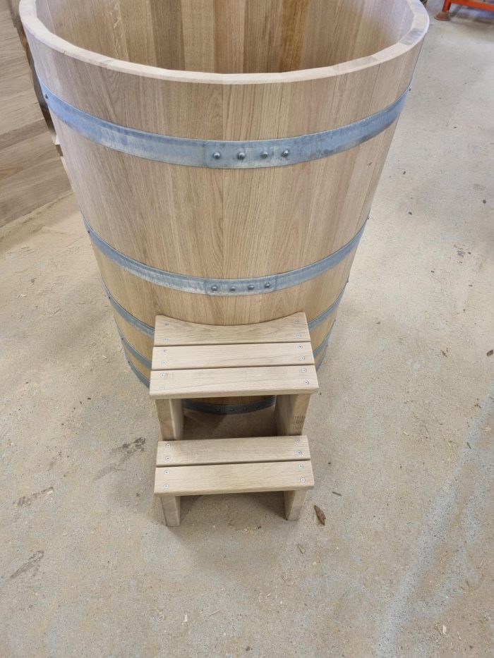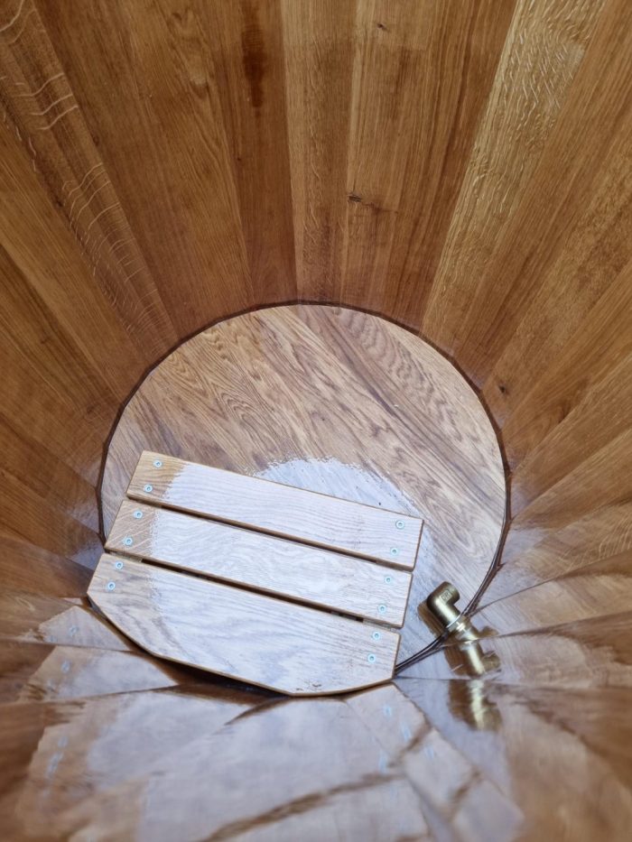 Träets naturliga isolering hjälper till att hålla vattnet svalt och behagligt året runt, samtidigt som doften och känslan